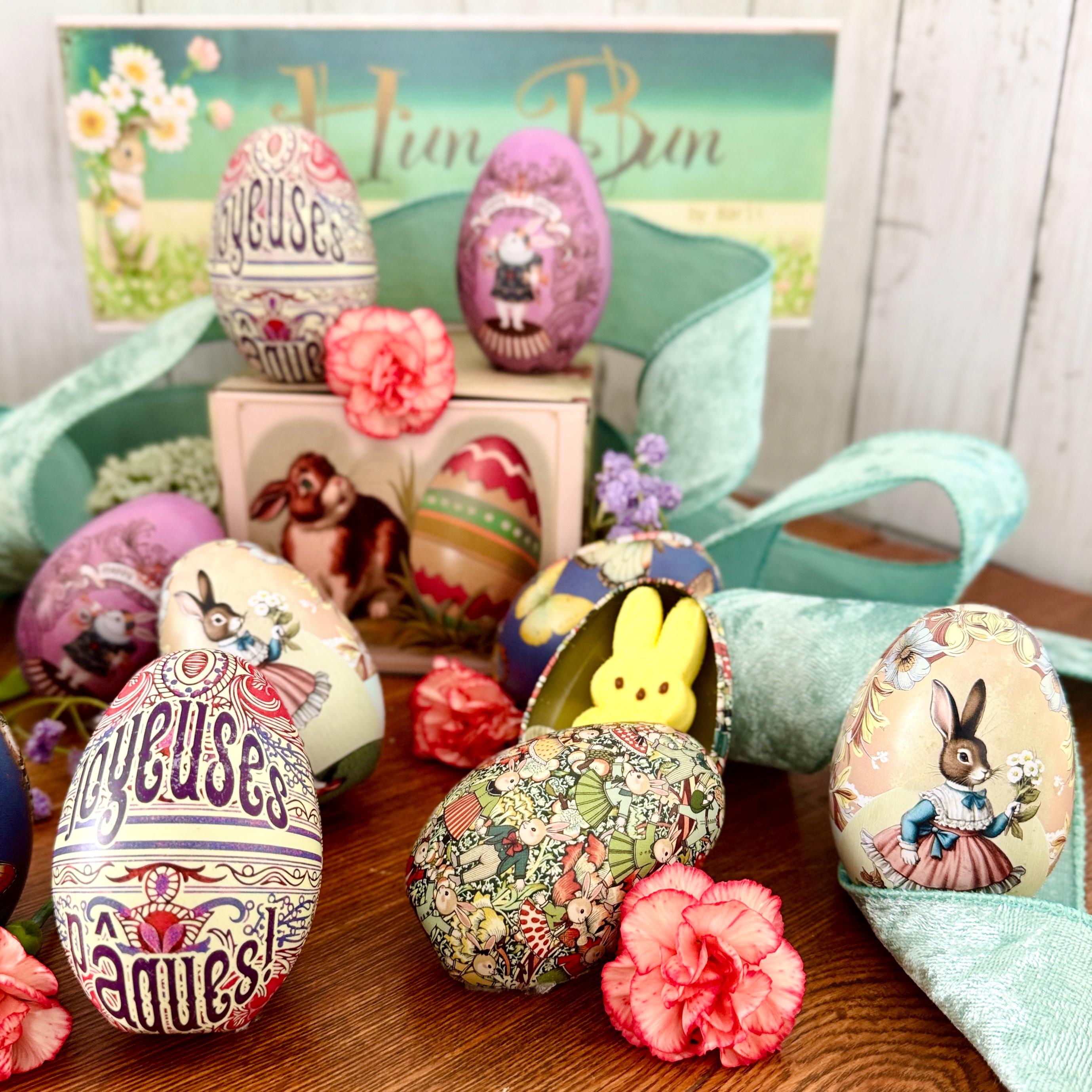 These refillable decorative tin eggs will be reused year after year for my grandchildren on Easter! They are lovely and so so so much better than plastic eggs!
